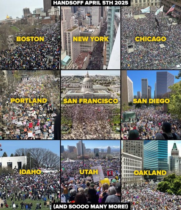 So if you want to see, hear and feel what happened in hundreds of communities, large and small across the nation yesterday, you’re better off searching #handsoff on the cesspool site owned by one of the protest targets rather than scouring major news outlets.